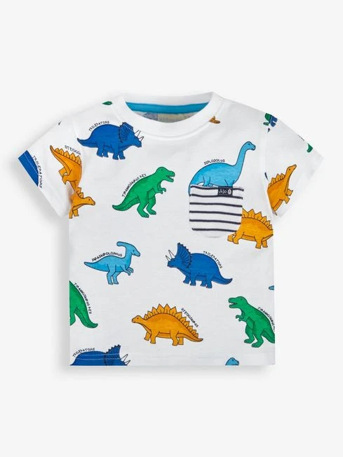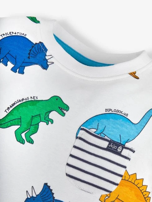 Jojo Maman Bebe JoJo Maman Bébé White Dino Print Pocket T-Shirt