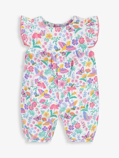 Jojo Maman Bebe JoJo Maman Bébé White Floral Bird Print Pretty Sunsuit
