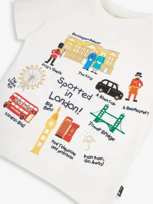 The Ours Spotted in London T-Shirt is essential for little Londoners or for visitors to the city. Look out for Buckingham Palace, Tower Bridge and Big Ben, all embroidered onto a crisp and classic white T-Shirt. Team with jeans or shorts for a laid-back look. Embroidery to front. The cotton-lined front is suitable for sensitive skin. Round neck. Short sleeves.