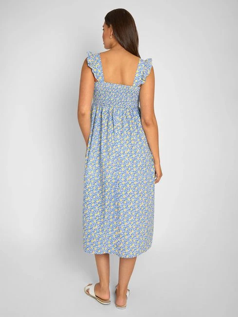 Jojo Maman Bebe JoJo Maman Bébé White Lemon Bloom Print Shirred Maternity Midi Dress