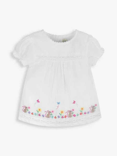 Jojo Maman Bebe JoJo Maman Bébé White Mouse Embroidered Blouse