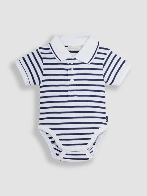 Jojo Maman Bebe JoJo Maman Bébé White Navy Stripe White & Navy Stripe Short Sleeve Polo Shirt Bodysuit