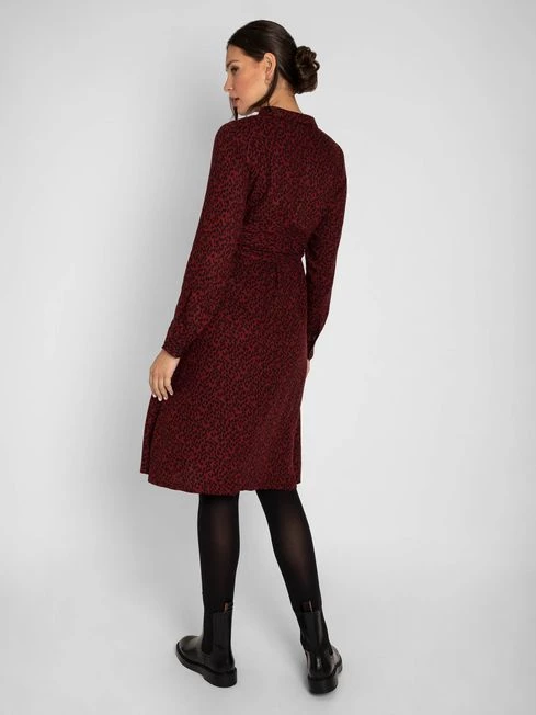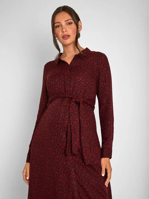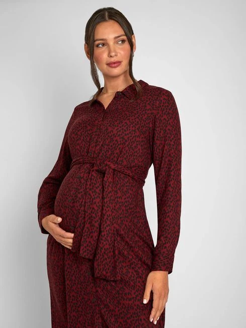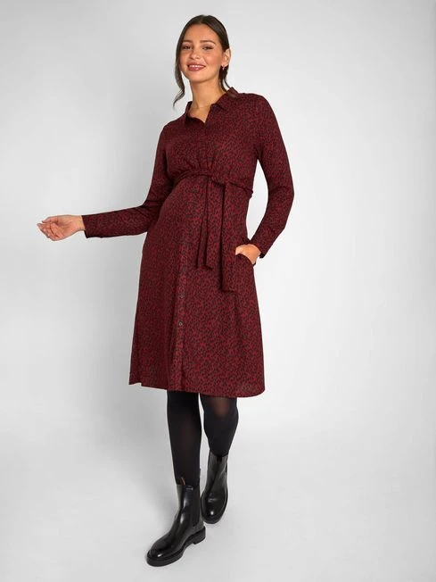Jojo Maman Bebe JoJo Maman Bébé Wine Animal Print Shirt Maternity Dress With Tie