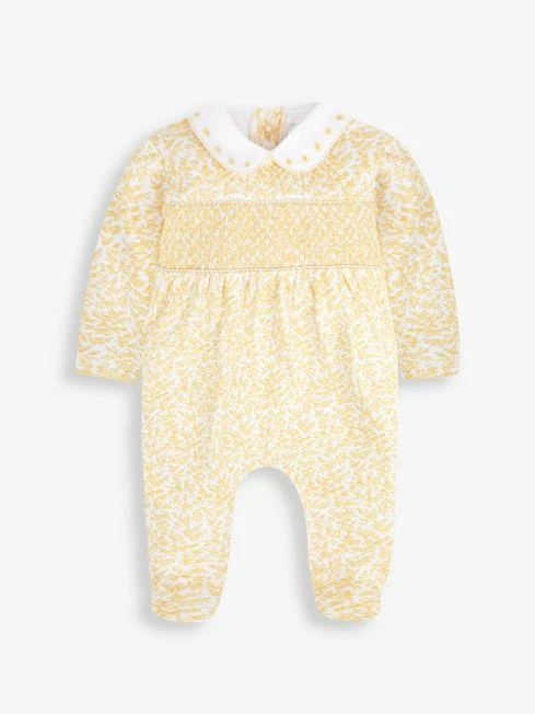 Jojo Maman Bebe JoJo Maman Bébé Yellow Pretty Smocked Sleepsuit