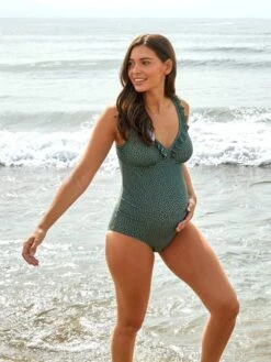 Jojo Maman Bebe JoJo Maman Bébé Khaki Spot Frill Maternity Swimsuit