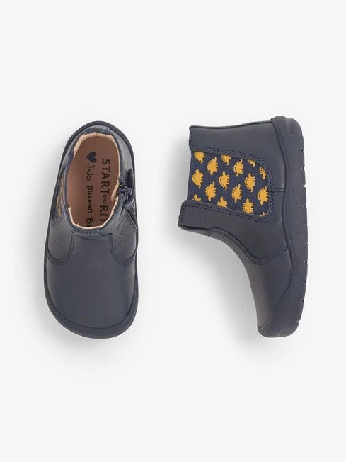 Roar with joy in these no-nonsense dinosaur print boots designed to keep adventurous feet comfortable and protected whatever the weather. Part of a new Start-Rite x JoJo Maman Bebé collection, the soft leather allows barefoot comfort and the flexible light sole ensure natural, easy movement. Heel and toe bumpers give added protection and the inside zip fastening with elastic side panel makes getting these boots on and off a doddle.. Exclusive Start-Rite x JoJo Maman Bébé design. Ideal first walking boots. Zip fastening and flexible elastic panel to make taking boots on and off a breeze. Ultra flexible lightweight soles with just the right amount of grip for natural, easy movement. Leather linings to absorb moisture and help keep little feet dry and comfy. Super soft leather for instant comfort. Scuff resistant heel and toe bumpers for protection just where it s needed Click here for the Complete Guide to our Start-Rite collection. Returns Start-Rite shoes purchased online can only be returned to a store which stocks the Start-Rite x JoJo collection.Click here to see the list of participating stores.They can also be returned via post to our warehouse. Upper & Lining: 100% Leather, Sole: Rubber.