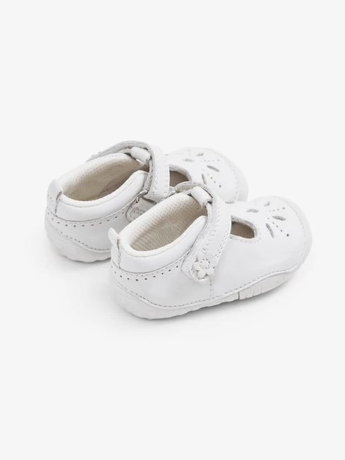 We are delighted to have partnered with Start-Rite – the experts in little feet – to create a gorgeous collection of first walking shoes and boots. Specifically designed for pre-walkers’ delicate feet, these simple yet chic all white T-Bar Pre Walker Shoes gently mould to their feet, giving lasting comfort with breathable mesh lining, padded ankles and cushioned in-soles. Exclusive Start-Rite x JoJo Maman Bébé design. Ideal first shoes. Riptape fastening for easy adjustment by little fingers. Padded ankles and cushioned insole for added comfort and support. Designed for square toes and chubby feet, with multi-width and half size fittings. Scuff-proof heel and toe bumpers for protection just where it s needed. Lightweight & flexible sole for natural movement and healthy foot development. Breathable mesh linings help keep little feet dry and comfy Click here for the Complete Guide to our Start-Rite collection. We recommend the Start-Rite Measuring Gauge to ensure you find the right fit. Returns Start-Rite shoes purchased online can only be returned to a store which stocks the Start-Rite x JoJo collection. Click here to see the list of participating stores. They can also be returned via post to our warehouse. Upper & Lining: 100% Leather, Sole: TPR.